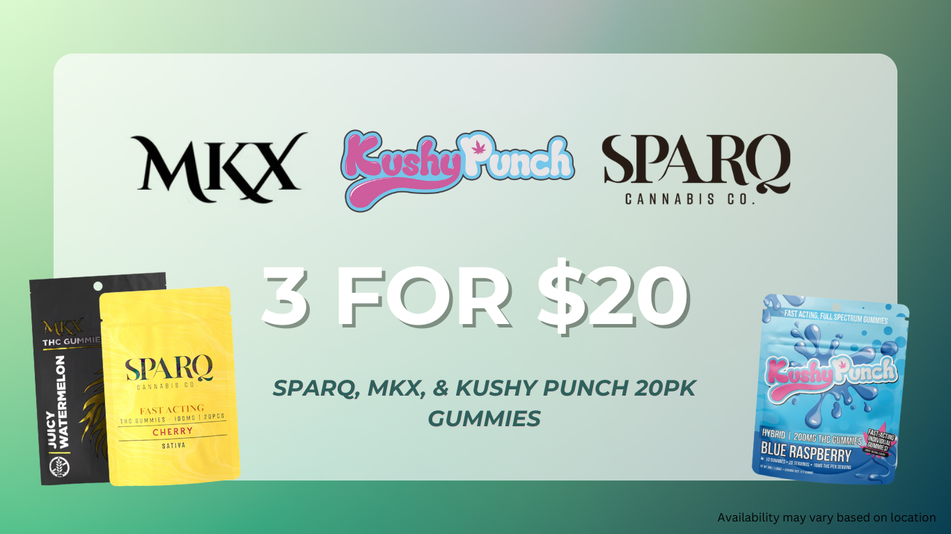 3 for $20 Sparq, MKX, and Kushy Punch 20pk Gummies – Availability may vary based on location