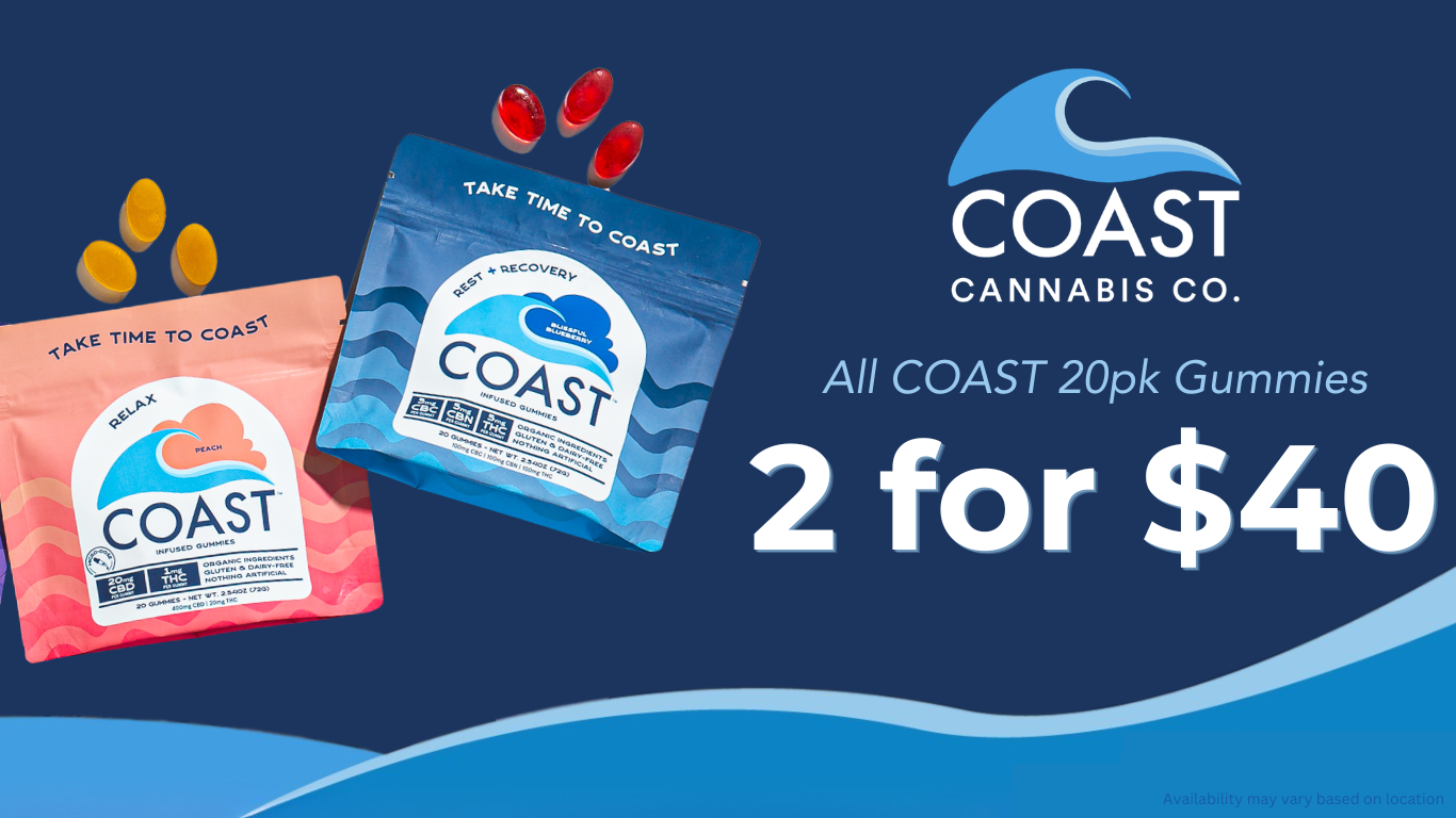 Mix and Match 2 for $40: All COAST 20pk Gummies – Availability may vary based on location.